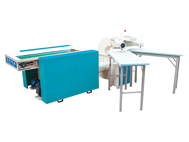 materials, through the air filling pillow, cushion and so on.Double teeth roll opening filling, filling the pillow, cushion plump, uniform appearance, less investment, high efficiency, simple operation. 150-200kg/h, total power 8.5kw.
