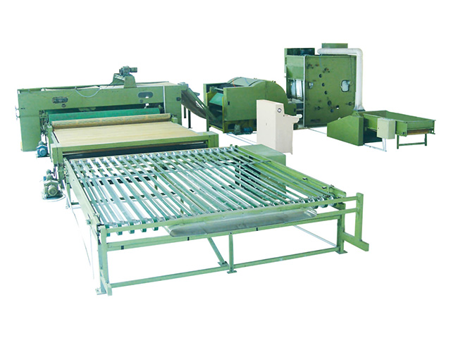 開(kāi)松機(jī)-給棉機(jī)-高速梳理機(jī)-鋪網(wǎng)機(jī)-軋斷-裝套機(jī)-電腦絎縫機(jī)
